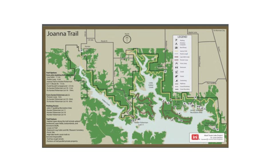Hiked part of the Joanna Trail until we discovered there are large sections which are not actively maintained. (Contacted Corps of Engineers)