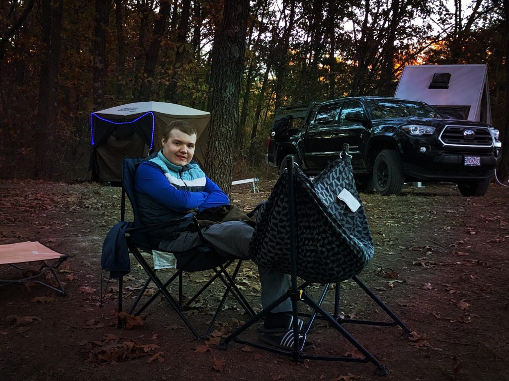 Installed the lights on Cornhole for our night tournaments! Jack regaled us with Halloween jokes and I told spooky stories around our Halloween Campfire!